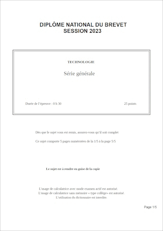 Sujet de DNB 2023