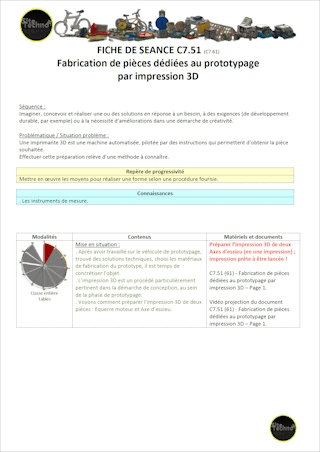 Fichiers de la modélisation du véhicule de prototypage : Fichiers SolidWorks, .STL pour impression 3D et .STEP pour ouverture sur d'autres logiciels de modélisation.