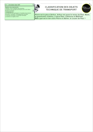 . Elaboration d'une carte heuristique à destination du classement des objets techniques de transport.