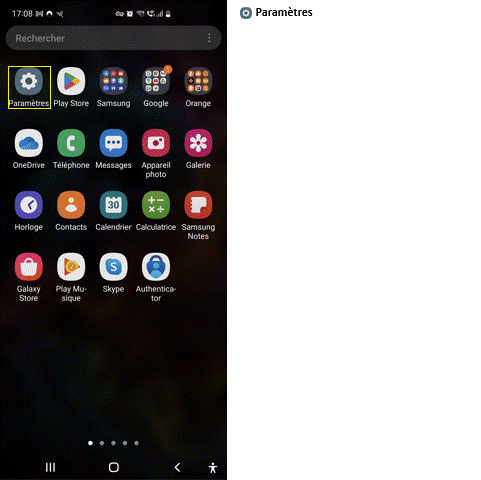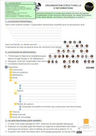 . Observation, navigation, dans une arborescence partielle d'un smartphone.