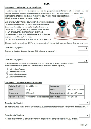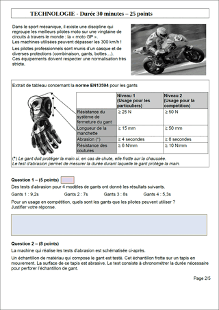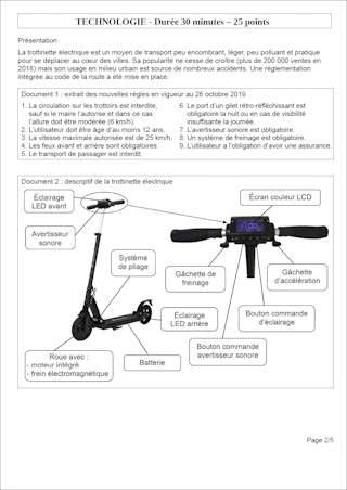 Sujet original - Photocopie élève (5 pages).