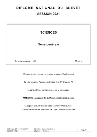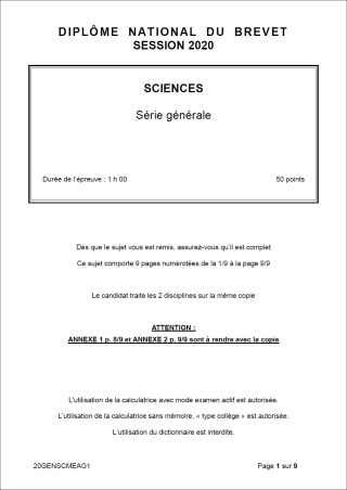 Sujet de DNB 2020