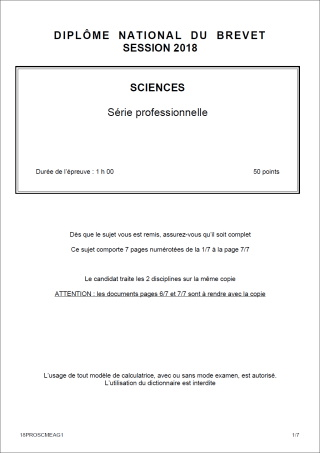 Sujet de DNB 2018 - Série Professionnelle