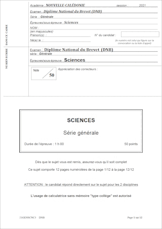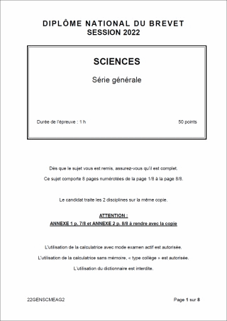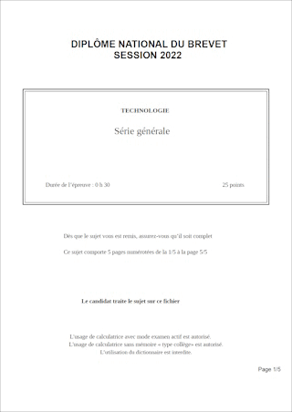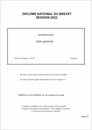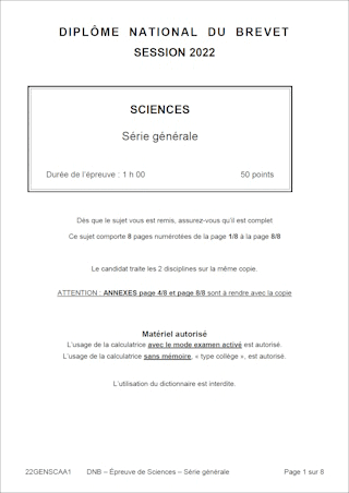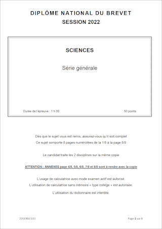 Sujet de DNB 2022