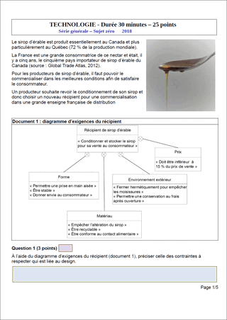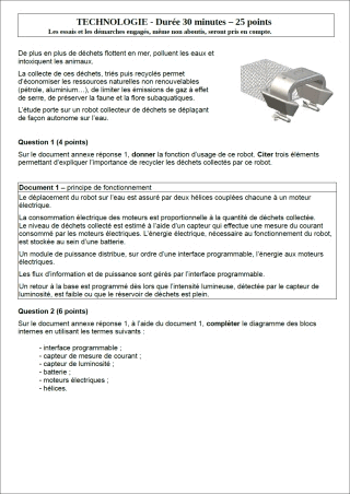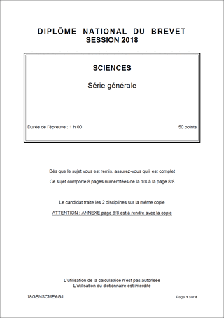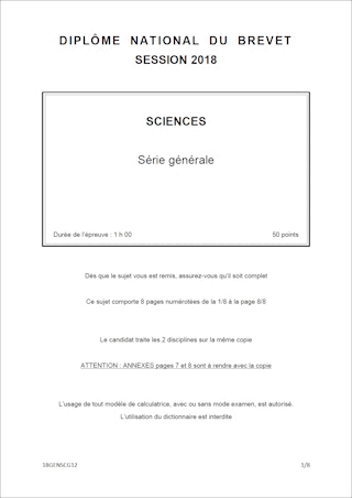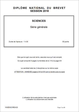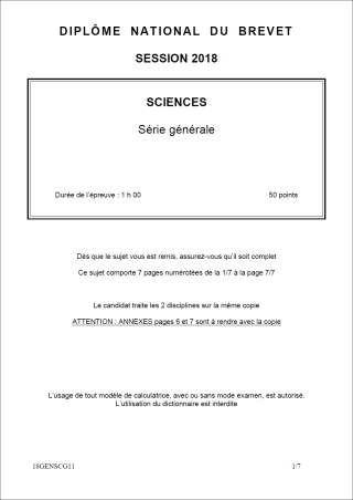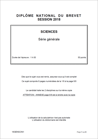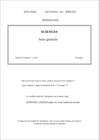 Sujet de DNB 2018