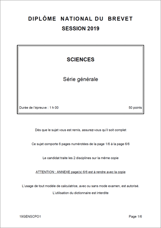 Sujet de DNB 2019