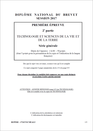 Sujet de DNB 2017