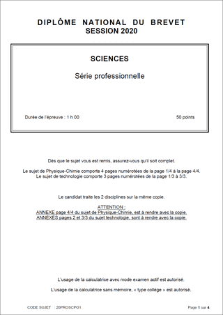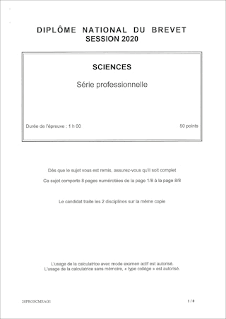 Sujet de DNB 2020 - Série Professionnelle
