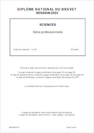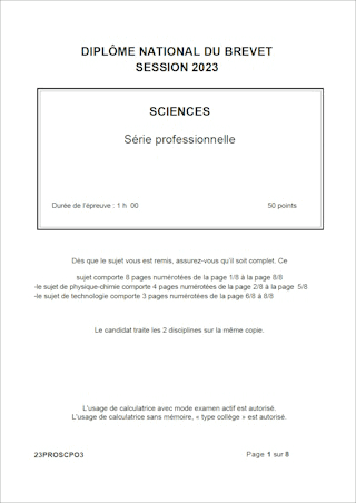 Sujet de DNB 2023 - Série Professionnelle