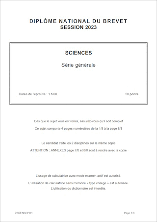 Sujet de DNB 2023