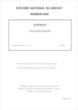 Sujet de DNB 2025 - Série Professionnelle