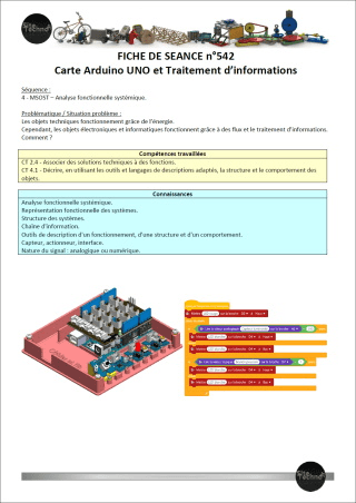 Découverte de la carte Arduino UNO (application Maskott Sciences).