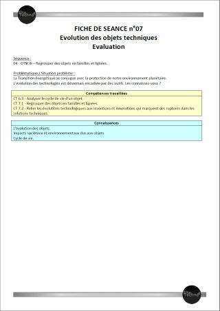 . Identification de la famille d'objets techniques et détermination de la raison.