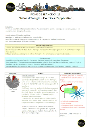 . Elaboration de la chaîne d'énergie du même objet technique.