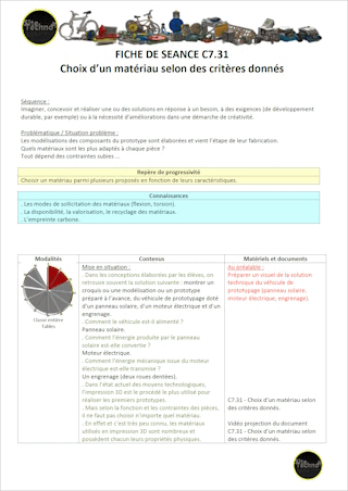 RP 7.3 - Choisir un matériau parmi plusieurs proposés en fonction de leurs caractéristiques.