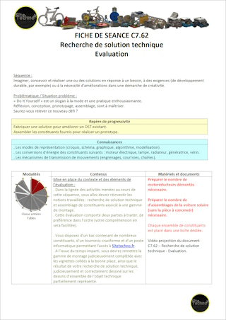 . Recherche d'une solution technique d'une pièce permettant l'assemblage du véhicule solaire.