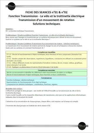 Calculs des rapports de transmissions des maquetes didactiques, du vélo et de la trotinette électrique.
